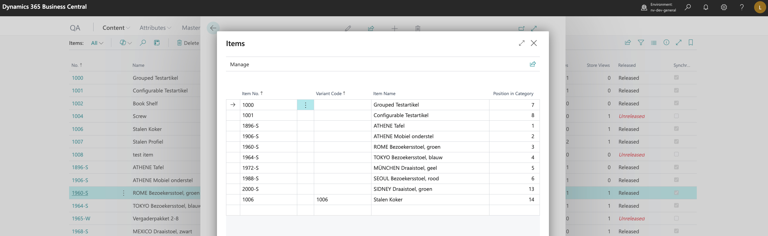 Select a (sub)category in the tree and click on Items to see a list of all items and item variants in this category. And in this screen you can add / remove items or item variants as well.