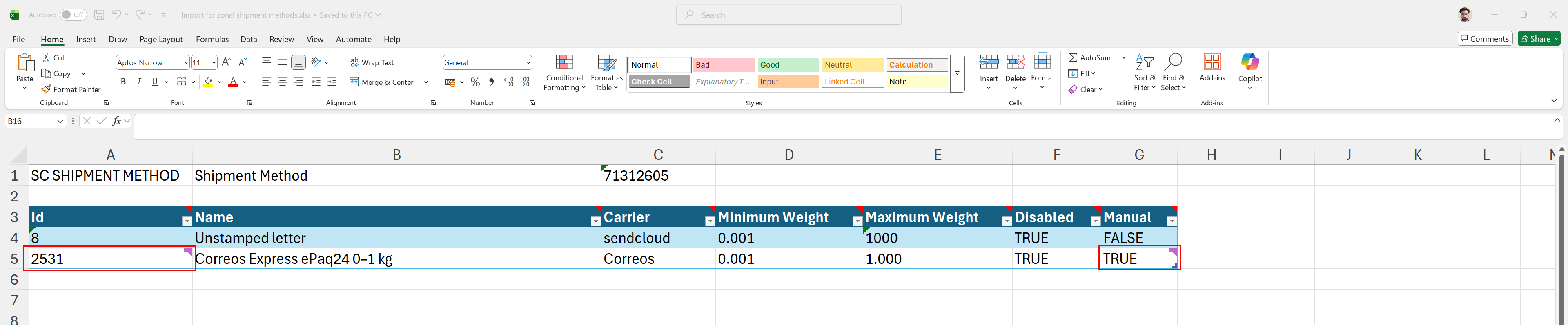 If you do not have this information, please contact your Sendcloud Customer Service Manager.Set the MANUAL column to TRUE for all manually imported shipment methods.