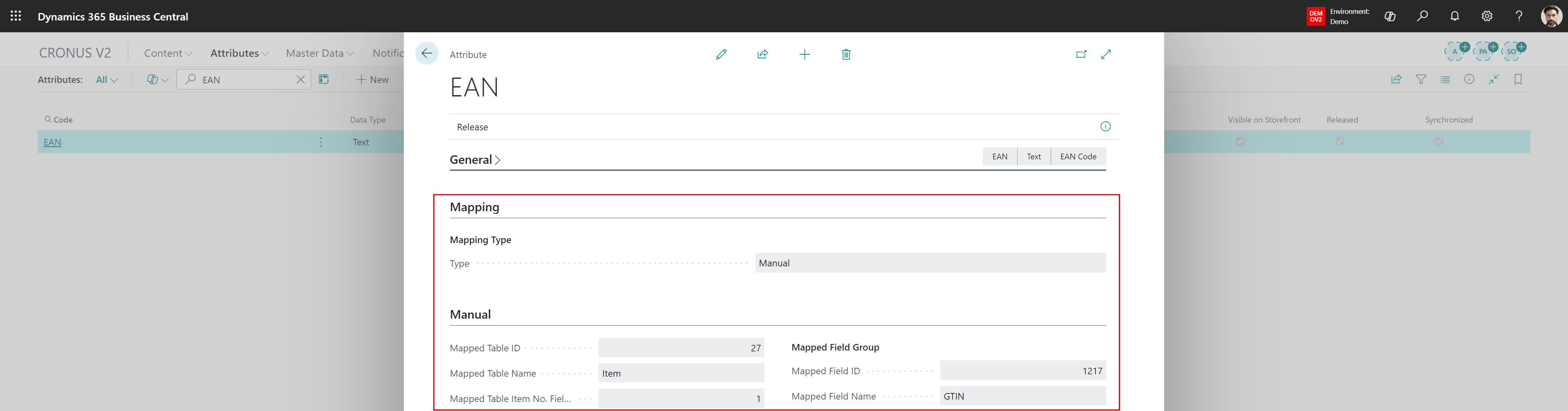 When looking for just a simple mapping where pointing at a table number and field is sufficient, you could use a Manual mapping, like mapping the EAN/GTIN field in the example below.